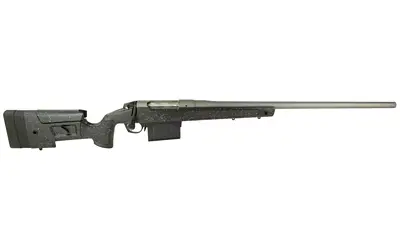 Think of the Premier Series as custom quality” but with standardized features for greater efficiencies in parts production and assembly – providing near custom performance at prices that are affordable to serious shooters. Bergara’s Premium stainless steel barrels receive a proprietary honing process at their barrel-making facility in Bergara” Spain. Then” at the Bergara USA factory” the barrel receives a Tactical Grey Cerakote finish and is coupled with their proprietary Bergara PREMIER action” featuring a nonrotating gas shield” coned bolt nose” and sliding plate extractor. This action is designed as a two-lug system that features a separate floating bolt head to ensure contact with the lug abutments in the action. It also features a cone-shaped bolt nose for smooth feeding of the cartridge” and a spring-loaded sliding plate extractor located in the front of the lower locking lug. The one-piece bolt body is stainless steel with a pad at the rear to accept the threaded-in bolt handle. The bolt head” the non-rotating gas shield” the bolt handle” and bolt shroud are fully Nitrided for extreme durability” as well as its self-lubricating properties The two-position safety is part of the trigger assembly” which in the HMR Pro rifle is a TriggerTech Frictionless Release Technology trigger. One great feature of this combination allows the bolt handle not to lock in the closed position” which in turn allows the rifle to be unloaded while in the safe position. The HMR Pro offers three barrel lengths” 20″” 24″” and 26″. The stock on the Bergara Premier HMR Pro (Hunting and Match Rifle) has an integrated mini-chassis for repeatable bedding. It supports a fully free-floated barrel. The stock has an adjustable cheek piece and length of pull spacers as well as integrated QD flush cup sling mounts and swivel mounts.
