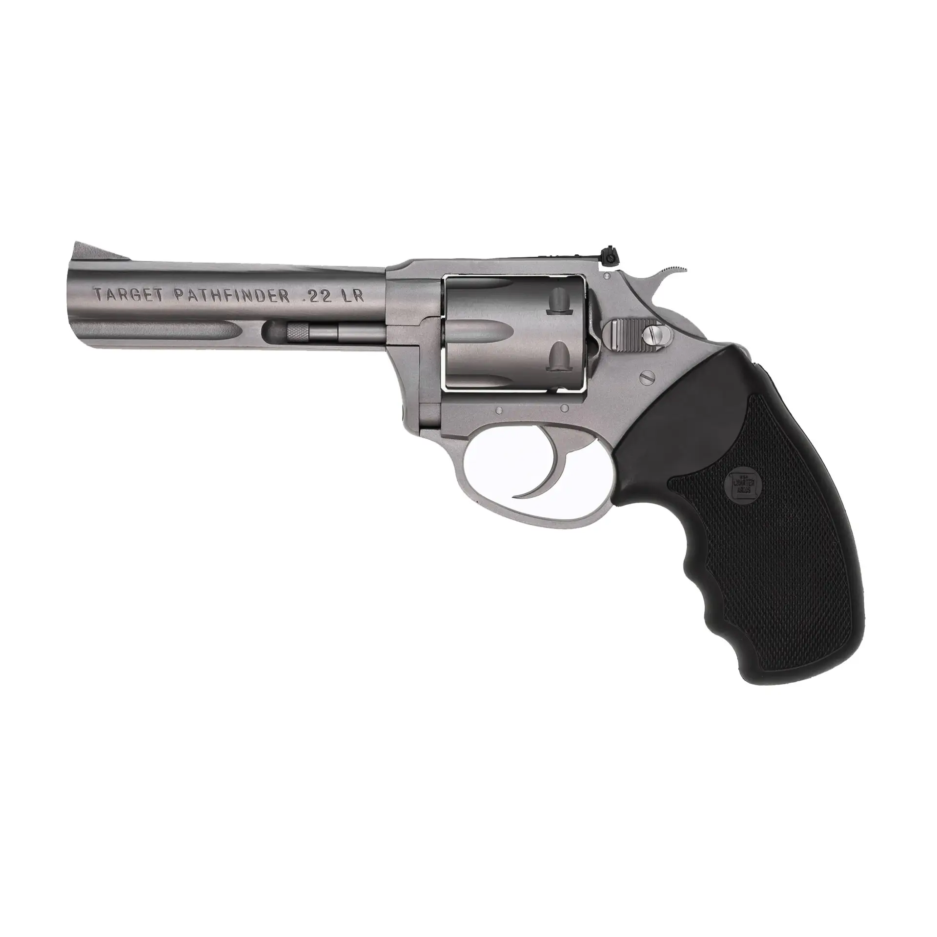Charter’s versatile Pathfinder” available in 22 LR” is a great introductory revolver for the novice shooter or anyone who needs a low recoil revolver. It has the look” feel and weight of a higher-caliber revolver” allowing you to gain proficiency while using relatively inexpensive .22 ammo.
