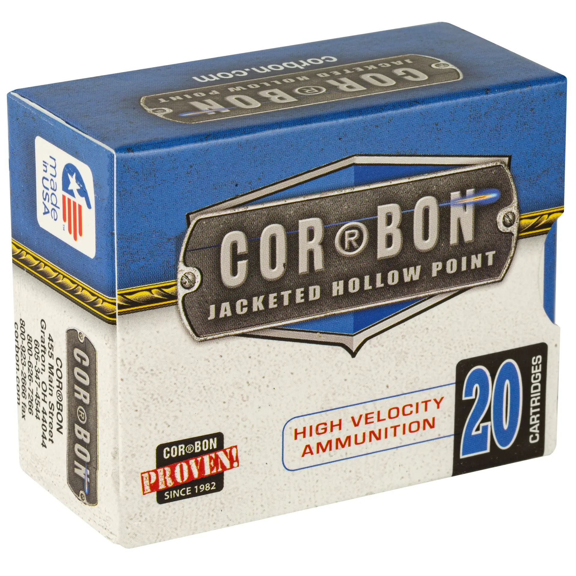 COR(R)BON JHP(TM) is the traditional hollow point that put COR(R)BON on the map. JHP(TM) is proven ammunition that provides reliable penetration and expansion. The internal and external serrations and soft lead cavity provide stopping power and an average penetration of 9 to 15 inches in ballistic gelatin.