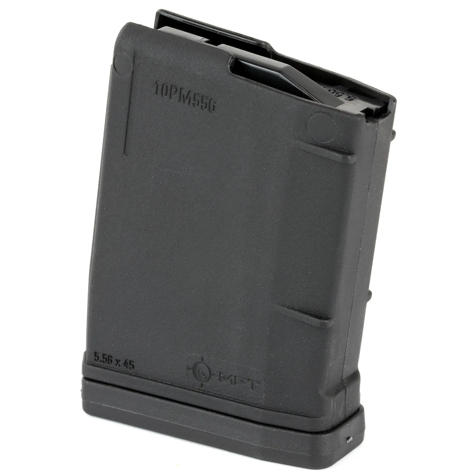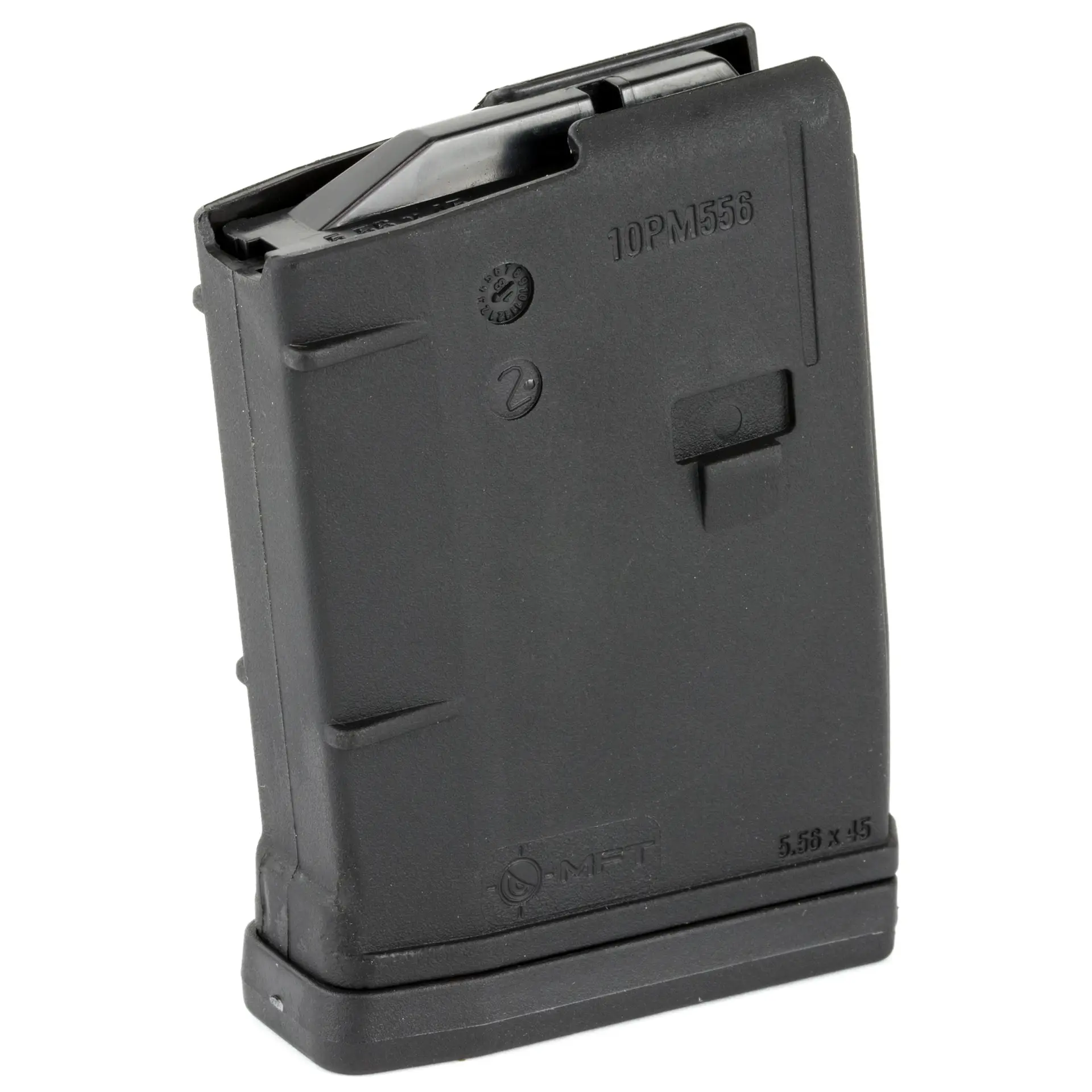This MFT magazine features a long-life stainless steel spring and four-way anti-tilt follower to ensure reliable feeding. The oversized bolt catch notch in the rear of the magazine provides enhanced reliability of the bolt catch operation. Simple tool less disassembly with double floor plate safety release tabs allow the user to safely release spring tension during disassembly and quick ammo dumps.
