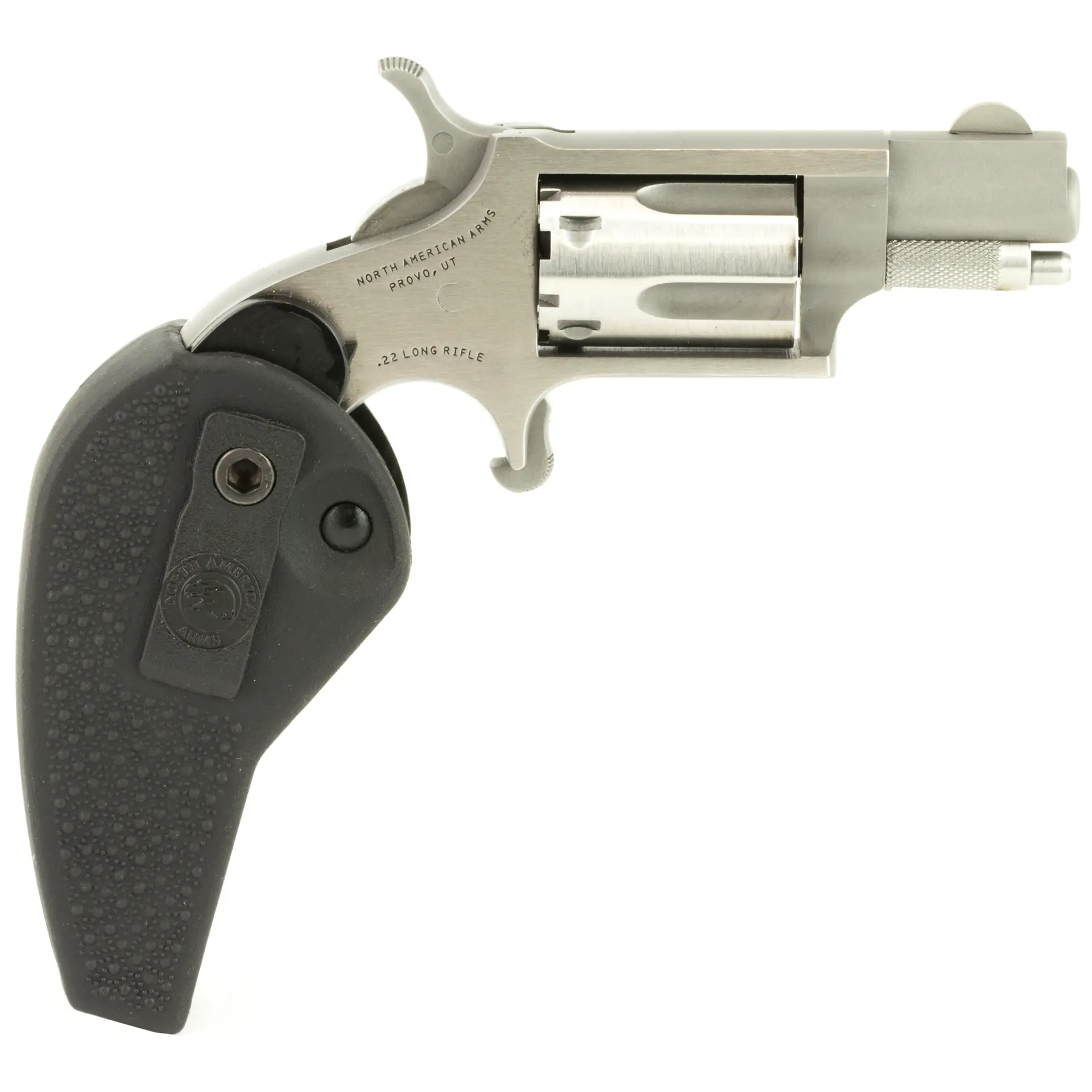 North American Arms Mini Revolver, Single Action Only, Revolver, 22LR, 1.125 Barrel, Matte Finish, Stainless Steel, Silver, Holster Grip, Fixed Sights, 5 Rounds NAA-22LR-HG
