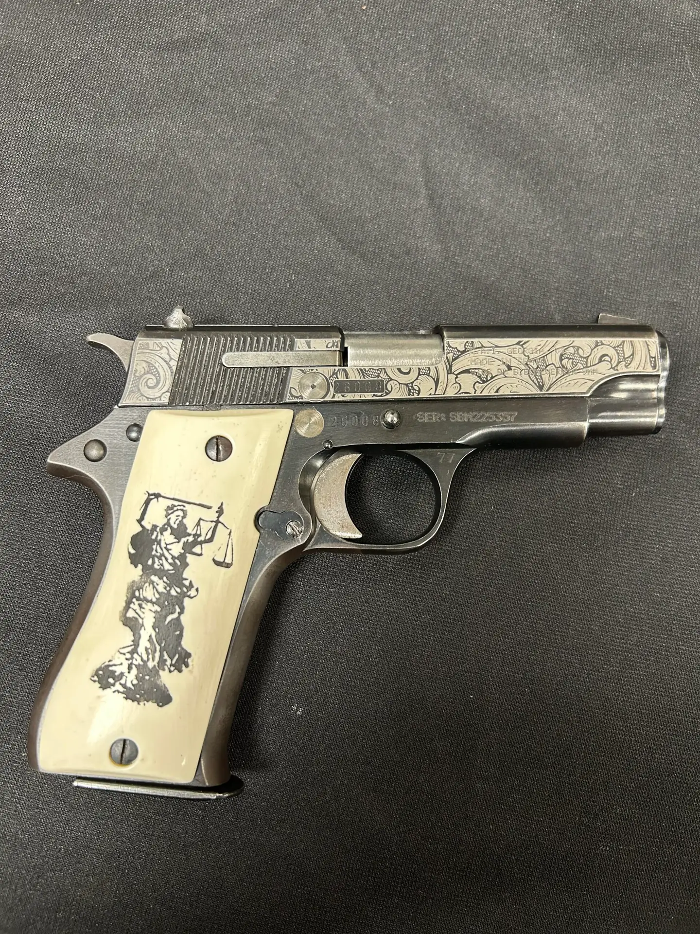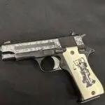 The Star Model BM is a single-action semi-automatic pistol that fires the 9mm cartridge. It was produced by Star Bonifacio Echeverria, S.A. in Eibar, Spain from 1972 to 1992 and is a compact version of the full-size Star Model B. Although its external appearance resembles the classic M1911, its design is different in several respects. For example, the Star does not have the 1911’s grip safety. In addition, the thumb safety on the Star BM blocks the hammer, whereas it blocks the motion of the sear on a 1911, and the Star’s trigger pivots on a roll pin rather than moving straight back like a 1911A1’s trigger to trip the sear. The all-steel pistol features a 3.77-inch barrel, an overall length of 7.25 inches, a height of 5 inches, and weighs approximately 34 ounces. It is fed by an 8-round detachable box magazine and includes fixed front sights with a drift-adjustable rear square notch.