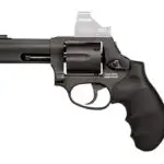 The Taurus 327 is a double-action only, chambered in .327 Federal Magnum (also compatible with .32H&R Magnum and .32 S&W). The matte black carbon steel or stainless-steel barrel, cylinder, and frame are backed by a recoil-absorbing rubber grip that is comfortable and provides excellent retention in a compact handgun platform. The Taurus 327’s front serrated ramp sight and no-snag rear sight channel provide quick and clear targets acquisition supported by consistent accuracy. The T.O.R.O. systems gives you the added ability to install your favorite RMS-C Footprint optic.