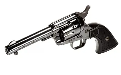 The Taurus Deputy is a single action only revolver with some modern additions. A transfer bar safety mechanism makes it safe to carry even with a full cylinder and a round under the hammer. Initially, the Deputy comes offered in two calibers and two barrel lengths. Steel construction offers long term strength and durability, and the polished black finish gives the deputy a profile which is at both times classic and entirely modern. Old west enthusiasts, cowboy action shooters and shooters of all kinds are sure to find something to enjoy with the Taurus Deputy.