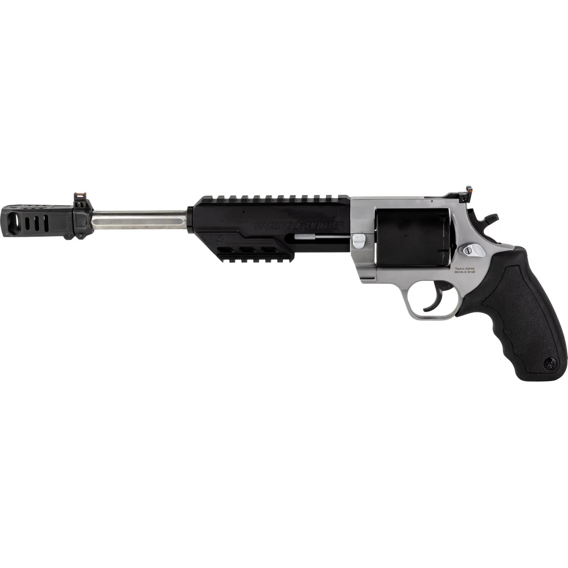 Taurus USA Raging Hunter, Double/Single Action, Metal Frame Revolver, Large Frame, 460 S&W, 10 Barrel, Stainless Steel, Matte Finish, Black Barrel/Cylinder, Silver Frame, Rubber Grips, Adjustable Rear Sight, 5 Rounds 2-460105RH