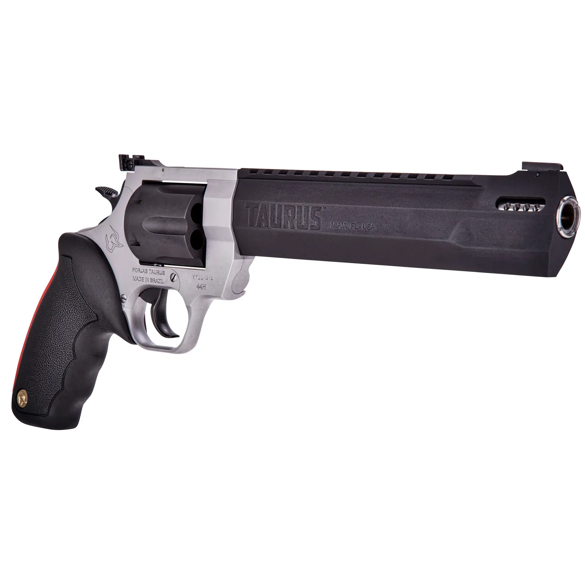 Winner of the 2019 American Hunter Handgun of the Year Golden Bullseye Award, the Taurus Raging Hunter is a next-generation, big-bore revolver that’s first in innovation-and built to last. A fun and effective alternative for short- to medium-range hunting scenarios, this five-shot revolver is chambered in 460 S&W Magnum and is available in Matte Black or Two Tone finish. Its revolutionary angular barrel design cuts down on overall weight, while its factory tuned porting and gas expansion chamber reduces muzzle lift for quicker target acquisition. Cushioned insert grips ensure a comfortable, controllable shooting experience.