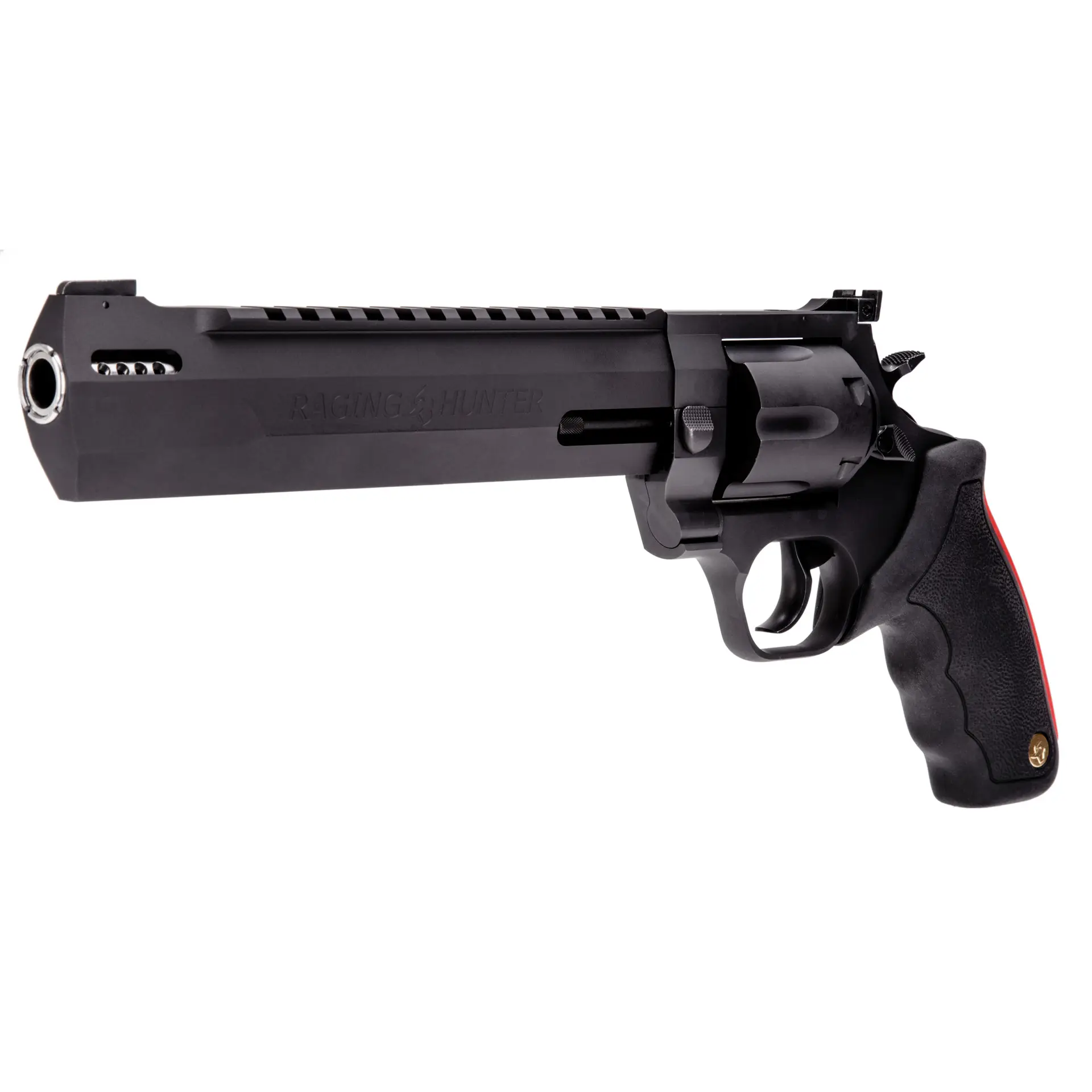 Winner of the 2019 American Hunter Handgun of the Year Golden Bullseye Award, the Taurus Raging Hunter is a next-generation, big-bore revolver that’s first in innovation-and built to last. A fun and effective alternative for short- to medium-range hunting scenarios, this five-shot revolver is chambered in 500 S&W and is available in Matte Black or Two Tone finish. Its revolutionary angular barrel design cuts down on overall weight, while its factory tuned porting and gas expansion chamber reduces muzzle lift for quicker target acquisition. Cushioned insert grips ensure a comfortable, controllable shooting experience.