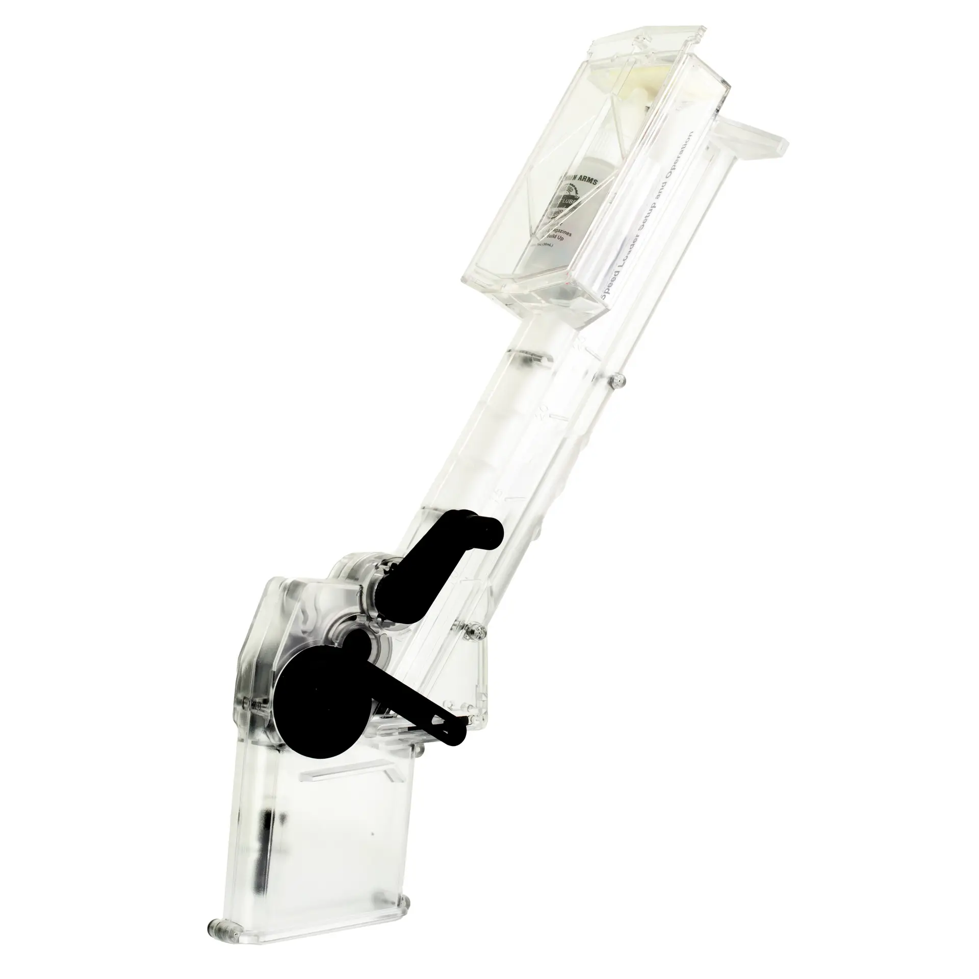The Tippmann Arms Speed Loader will load your magazines in seconds” perfectly every time. Simply load the hopper with 50 to 100 rounds of your favorite .22LR ammo” gently shake the rounds into the track” and crank the handle to load. The Tippmann Arms Speed Loader will not damage the lead or casing like other speed loaders. With every crank of the handle” one plunger pushes down the bullet stack and another loads the round. It’s so smooth and fast you’ll hardly feel it working.