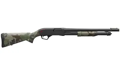 Winchester Defender shotguns are lightweight jacks-of-all-trades. The 18″ barrel length with the cylinder choke tube makes it an ideal utility shotgun in camp” is maneuverable in tight brush and tucks neatly behind the seat of your truck. This Hybrid Defender has a style all its own with a durable matte black finish on the barrel and receiver and Woodland camo hydrodipped stock.